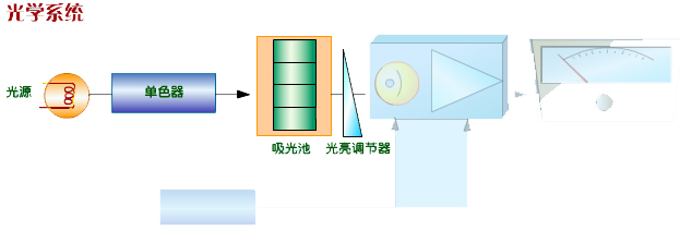 光學系統主要由光源、單色器、一系列透鏡、吸收池,檢測器和數據處理及顯示器組成。其作用是使光束準直,聚焦。